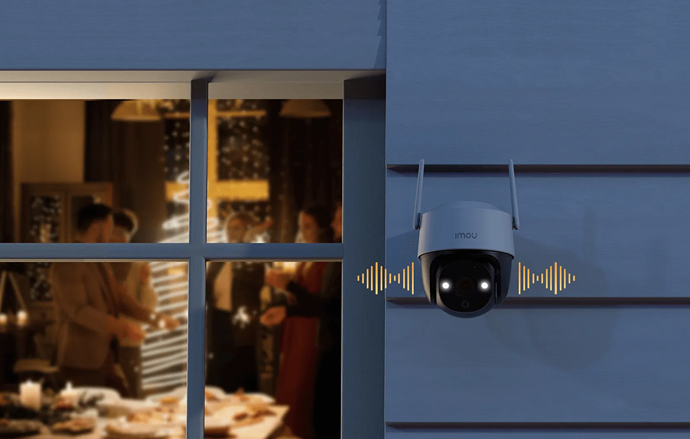 A kamera hangszóróval és mikrofonnal van felszerelve, így lehetőséget biztosít a szabad kommunikációra az otthon lévőkkel. Segítségével például behívhatja a kertben játszó gyermeket vacsorára, üdvözölheti a váratlan vendégeket, vagy kérheti a futárt, hogy helyezze az ajtó elé a csomagot.