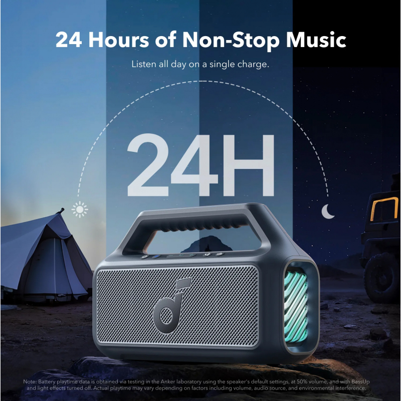 Ne hagyd, hogy a buli megszakadjon! A hordozható SoundCore Boom 2 egyetlen feltöltéssel akár 24 órán át képes szolgáltatni a zenét. Reggeltől estig, vagy akár éjszakába nyúlóan – a ritmus veled marad. És ha a telefonod is töltésre szorulna? Semmi gond! A beépített power bank funkcióval gyorsan feltöltheted eszközeidet útközben, így sosem maradsz áram nélkül a legfontosabb pillanatokban.