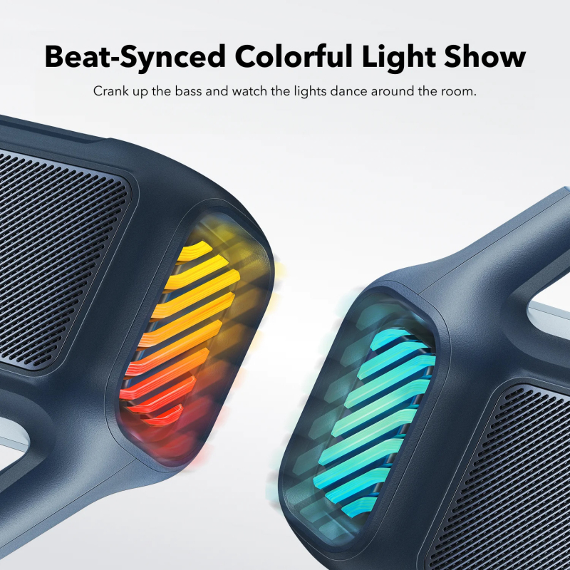 Tedd még emlékezetesebbé a bulit a beat-szinkronizált, színes RGB fény show-val! A hangszóró oldalsó passzív radiátorai dinamikusan pulzálnak a zene ütemére, vizuális élményt adva a hangzáshoz. A testre szabható Pro EQ segítségével finomhangolhatod a hangzást az ízlésednek megfelelően, hogy minden dal tökéletesen szóljon. A PartyCast 2.0 technológiával pedig akár 100 Anker SoundCore hangszórót is összekapcsolhatsz, hogy igazi hangfalrengeteget hozz létre!