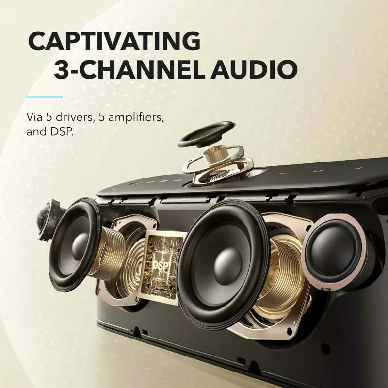 Az 50W-os kimeneti teljesítménynek köszönhetően az Anker SoundCore Motion X600 minden teret gazdag, élénk hangzással tölt meg. Akár egy házibulit rendez, akár egyszerűen csak a kedvenc zenéit hallgatja, a hangszóró életre kelti a zenét, lenyűgöző akusztikát teremtve.