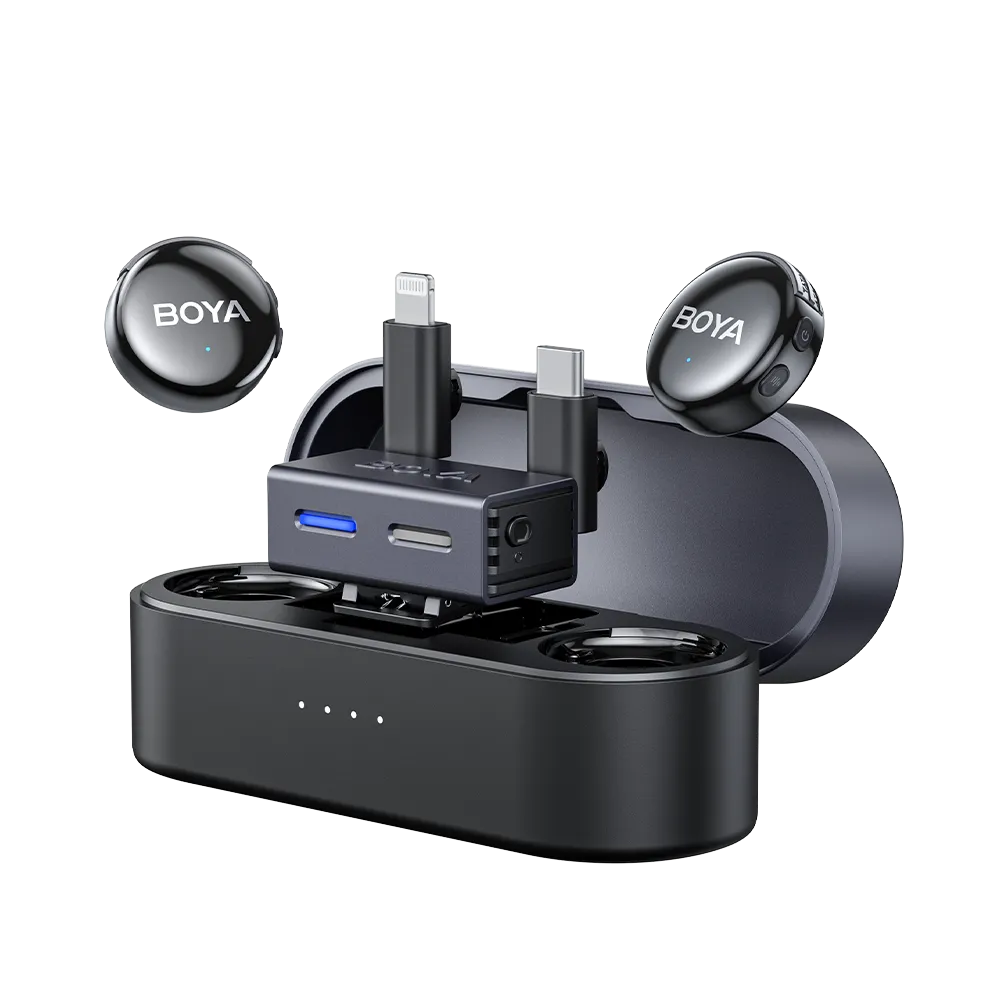 BOYA BOYALINK V3-01 2.4 GHz Univerzális Vezeték Nélküli Szett (1 vevő + 2 adó) – USB-C + Lightning + 3,5 mm TRS