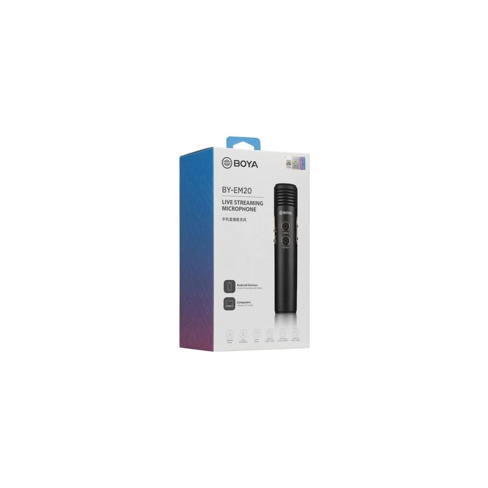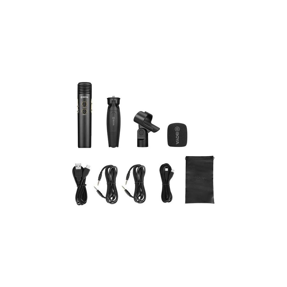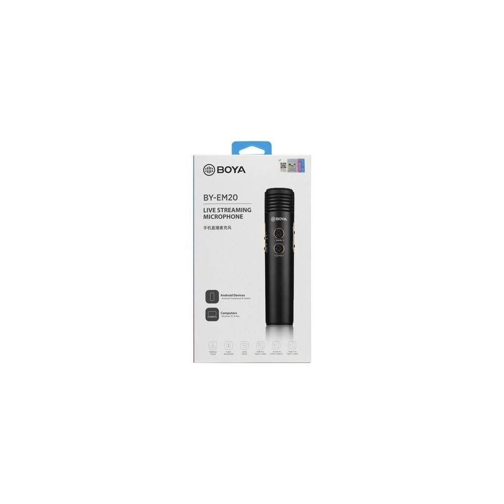 Tegye egyszerűbbé az asztali és mobil mikrofonozást a BOYA BY-EM20 digitális mikrofonnal, amely USB Type-C és 3,5 mm-es kimenettel is rendelkezik, így számos mobileszközzel kompatibilis. A külső hangbemenetet, beépített keverőt, fejhallgató-csatlakozót, három DSP módot és asztali állványt tartalmazó lenyűgöző funkciókészlettel ez a mikrofon számos alkalmazásra készen áll, beleértve a streaminget, a karaokét, a podcastingot, és a zenerögzítést.