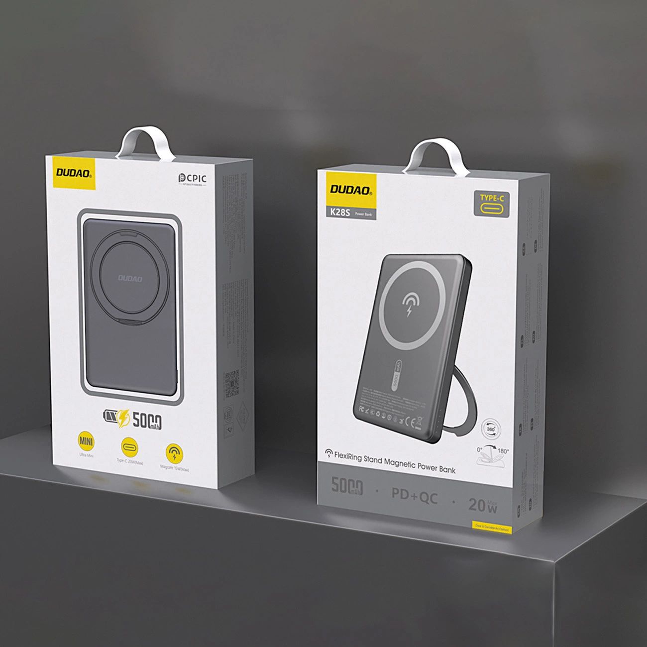 A Dudao K28S 20W PD 5000mAh Powerbank elegáns és funkcionális töltő, amely megszakítás nélkül biztosít energiát mobil eszközeid számára. A 20W Power Delivery technológiának és a MagSafe-kompatibilitásnak köszönhetően tökéletes választás azok számára, akik értékelik a gyors töltést és a használati kényelmet. A beépített állvánnyal rendelkező powerbank nemcsak a kényelmes töltést teszi lehetővé, hanem a készülék használatát is, miközben tölti azt. Legyen szó utazásról, munkáról vagy otthoni használatról, a Dudao K28S megbízható megoldás az okostelefonok, tabletek és más vezeték nélküli töltésre alkalmas eszközök töltésére. Tedd energiadússá minden napodat a Dudao K28S powerbankkal!