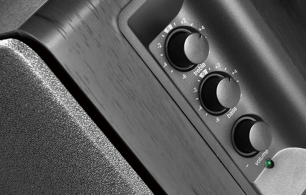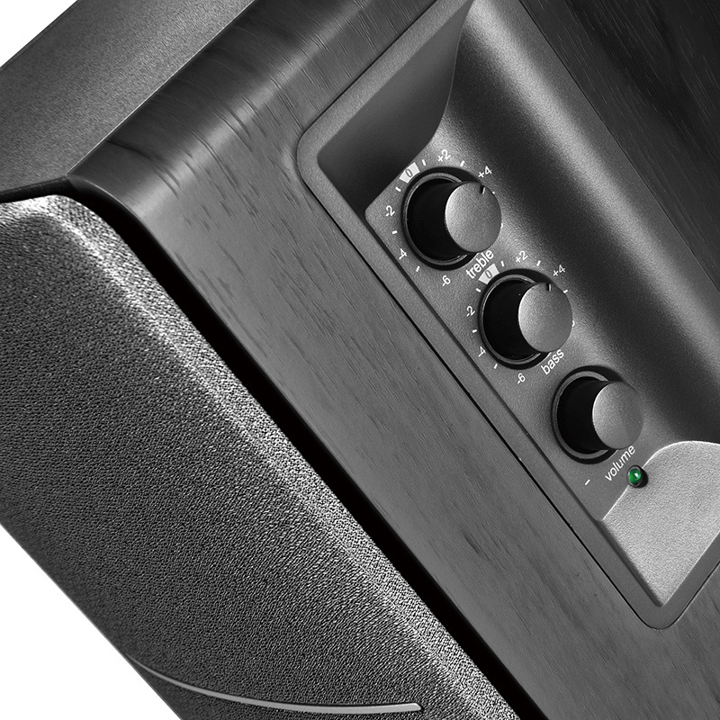 Pontos vezérlés Személyre szabhatja hangélményét a basszus, a magas hangok és a hangerőszabályzó gombokkal. Az általuk előállított kiváló minőségű hangzás precíz, erőteljes középhangokat biztosít, amelyek minden kritikust elragadtatnak. Egy kompakt, praktikus távvezérlő tartozék. Az Edifier R1280T beépített hangszínszabályzóval rendelkezik a hangszóró oldalán. A preferenciáktól függően -6 és +6 dB között mikrobeállíthatja a magas- és mélyhangokat. A digitális hangerőszabályzó minden egyes alkalommal, amikor újra bekapcsolja a hangszórót, automatikusan kényelmes szintre áll be.