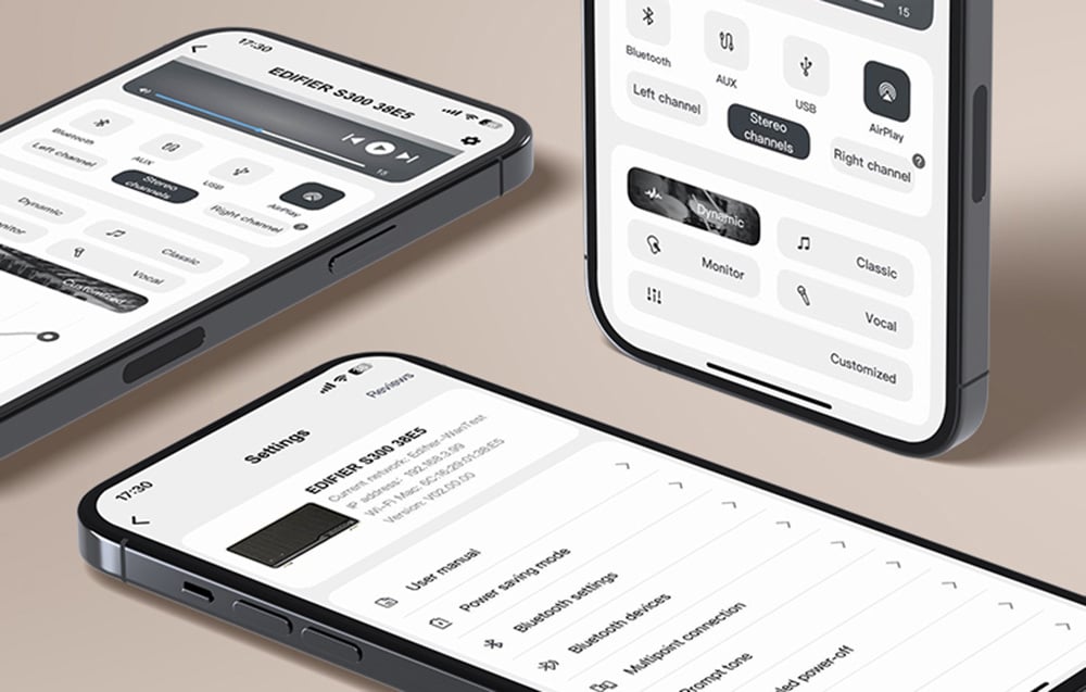 Apple AirPlay 2: A beépített Wi-Fi lehetővé teszi az Apple AirPlay 2-t - streamelj zenét iPhone-odról, iPadedről, Apple TV-ről vagy MacBookodról, és csoportosíts több Edifier S300 hangszórót egy többszobás rendszerbe, szinkronizálva a hangzást az egész otthonodban.
