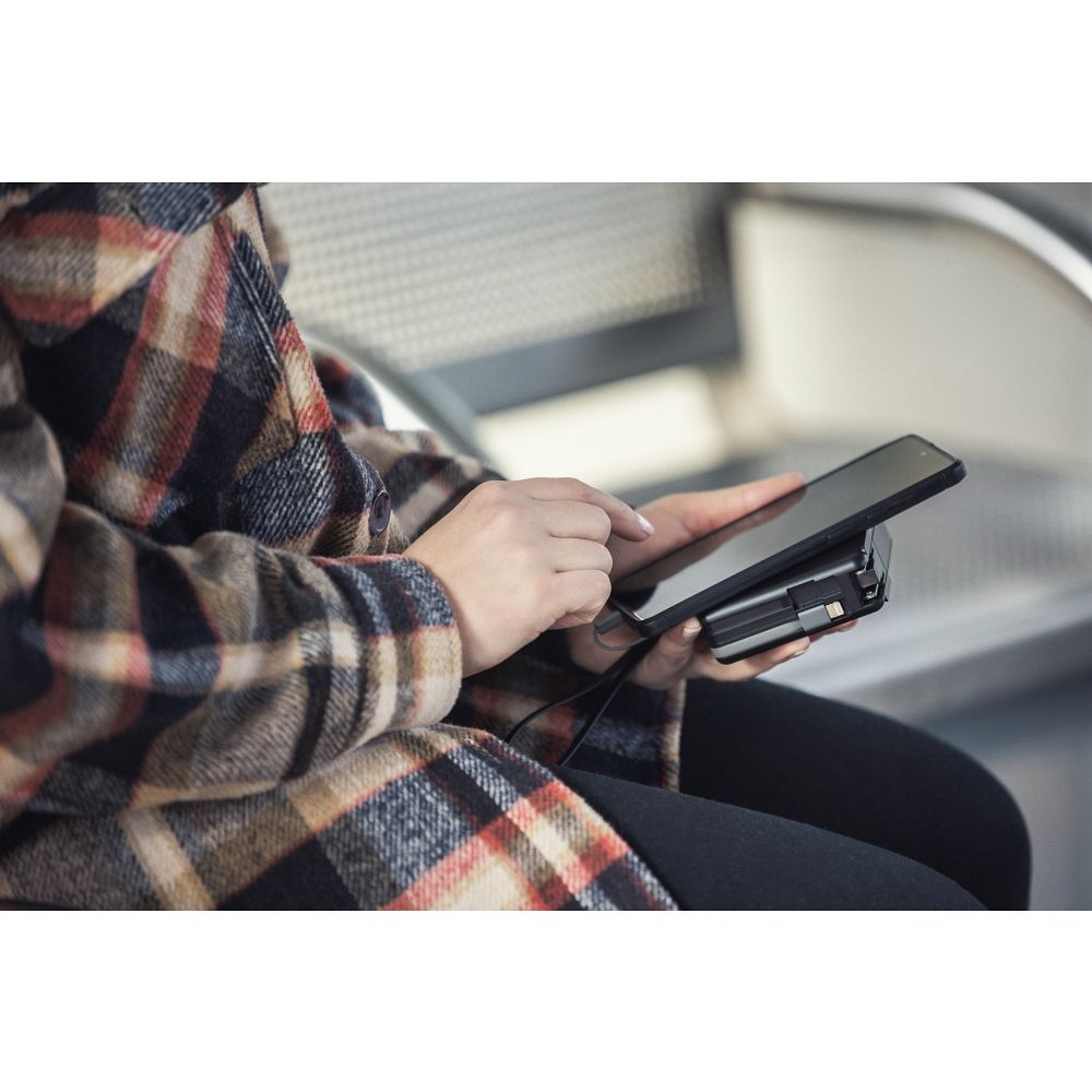 A tökéletes utazási készlet: FORCELL 5 az 1-ben multitöltő. Beépített USB-C és USB-A csatlakozókkal, valamint power bankkal rendelkezik. Lehetővé teszi a vezeték nélküli töltést. Beépített töltőkábelek: USB-C, Lightning (iPhone kompatibilis), amely lehetővé teszi több különböző eszköz egyidejű töltését. A második kábel hibrid - két csatlakozót egyesít egyben: Micro USB-Lightning. A 3 cserélhető fej (UK, US, EU) lehetővé teszi a különböző áramforrások használatát szinte bárhol a világon. A vezeték nélküli töltés lehetővé teszi az eszközök kábel csatlakoztatása nélküli töltését. A beépített power bank (10,000 mAh) magas kapacitásával többszöri eszköztöltést tesz lehetővé áramforrás nélkül. A támogatott töltő szabványok: Power Delivery, Quick Charge 3.0 és 4.0, melyek lehetővé teszik a gyors töltést az ezekre a funkciókra képes eszközök esetében. Támogatja az AFC funkciót a Samsung telefonokban. A beépített kijelző megmutatja a power bank aktuális töltöttségi szintjét. Műszaki adatok: Bemeneti feszültség: 110-240V~ AC bemeneti frekvencia: 50-60Hz, 3A Kimeneti feszültség: 5.0V, 3.0A Kimeneti teljesítmény: 20W Power bank: 10,000 mAh Vezeték nélküli töltés: 15W Beépített portok: USB-A, USB-C A CE, LVD, ERP, ROHS tanúsítványok garantálják a legmagasabb termékminőséget. Méret: A: 12 cm B: 16 cm C: 5 cm Növeld vállalkozásodat Forcell-lel! Nézd meg, mit nyersz a márka hivatalos forgalmazójaként. Van kérdésed? Lépj kapcsolatba az értékesítési képviselőddel, aki részletes tájékoztatást nyújt az ajánlatról.