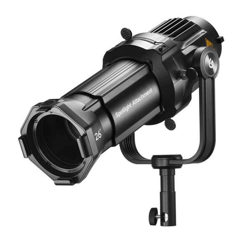 A Godox a legjobb felhasználói élmény biztosítása érdekében a Spotligth Attachmentet 300 W-nál nem nagyobb teljesítményű LED-es fényforrással ajánlja.