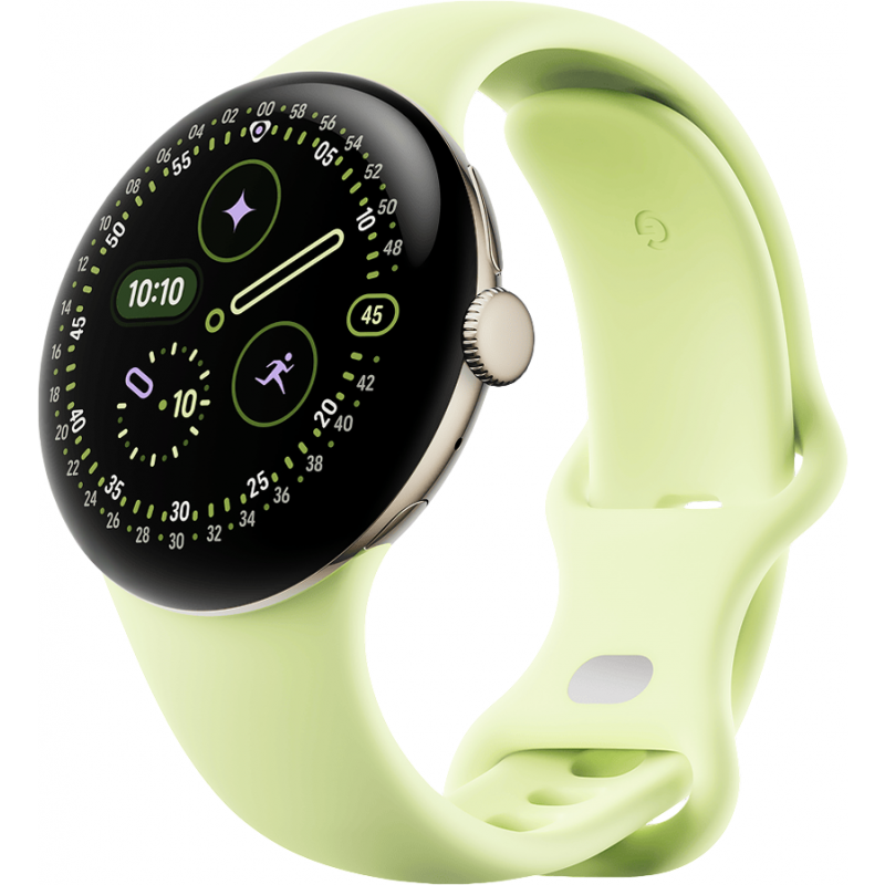 - Elegáns megjelenés: A Google Pixel Watch 4 letisztult, kör alakú formavilága és az arany színű fém tok prémium érzetet kölcsönöz. A vibráló citromsárga, puha szilikon szíj kényelmes viseletet biztosít egész nap, és egyedi, modern stílust visz öltözékébe.