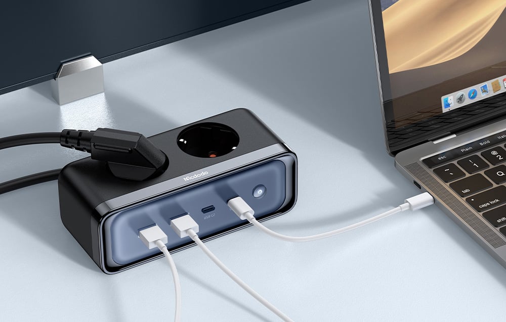 Most mindent egy kompakt eszközben érhetsz el! A Mcdodo CH-4610 elosztó két konnektorral és négy USB porttal - két USB-A és két USB-C - lehetővé teszi több eszköz egyidejű töltését és áramellátását, beleértve a okostelefonokat, laptopokat, tableteket vagy más elektronikus eszközöket.
