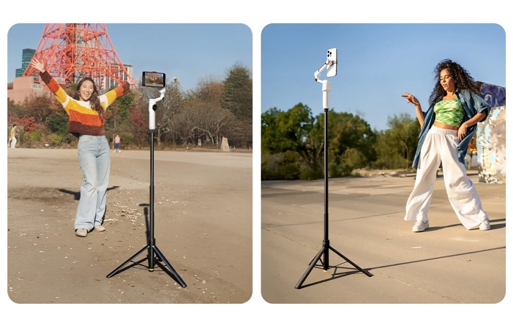 Tökéletes szög és magasság: A beépített szelfibot akár 1,1 m-re is kinyúlik, így nagy perspektívájú felvételeket és jobb képkompozíciót készíthet. Dinamikus jeleneteket vagy vlogokat rögzíthet, illetve csoportképeket készíthet. Az állítható magasság lehetővé teszi, hogy a helyzetnek megfelelően állítsd be a pozíciót.