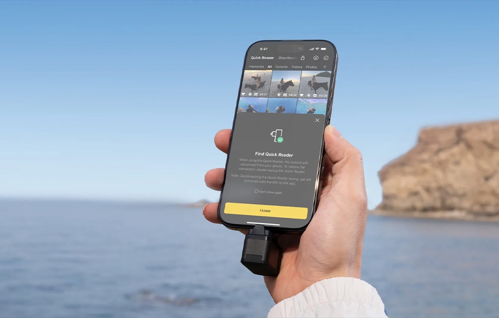 Az Insta360 X5 Gyors Olvasó egy okos és kompakt kiegészítő, amely nagyban javítja a videós munkafolyamatokat. Az okostelefonjához való közvetlen csatlakozással egyszerre rögzíthet és menthet fájlokat, anélkül, hogy be kellene kapcsolnia a kamerát vagy csatlakoznia kellene a Wi-Fi-hez. Praktikus megoldás azok számára, akik értékelik a felvételekhez való gyors hozzáférést és a hatékony szerkesztést, mind terepen, mind helyben, otthon vagy a stúdióban.