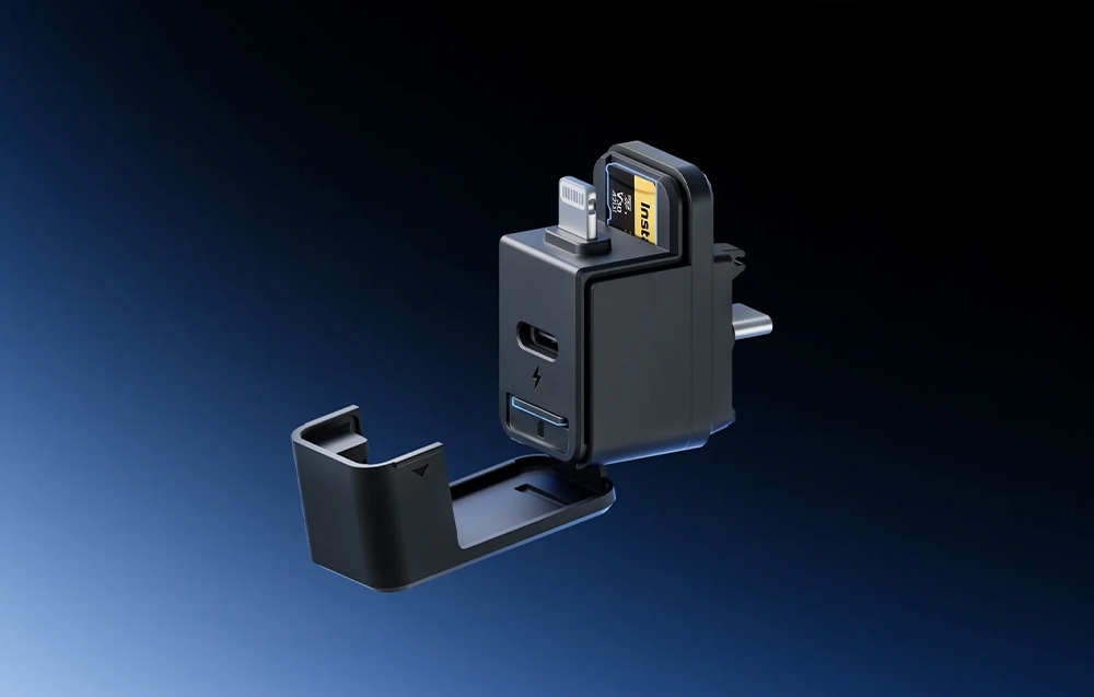 Az Insta360 olvasó egy további memóriakártya-nyílással van felszerelve, így bővítheti az anyagok mentéséhez szükséges helyet. Az automatikus elsőbbségi írási rendszer azt jelenti, hogy amint a készüléket bedugja, az adatok közvetlenül a kártyára kerülnek - nem kell manuálisan kiválasztani, hogy hova írjon. Az USB-C és Lightning csatlakozók révén az olvasó az okostelefonok széles skálájával kompatibilis, mind az Android, mind az Apple készülékekhez. Többé nem kell további kiegészítőkkel felszerelkeznie.