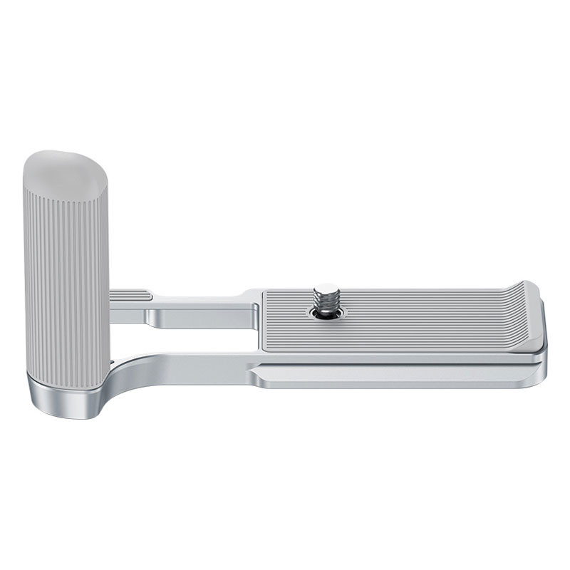A markolat alján egy 1/4"-20 menetes lyuk található, amely lehetővé teszi a háromlábú állványra való felszerelést a stabil, kézmentes fényképezés és a kamera rázkódásának csökkentése érdekében. Emellett egy Arca-Swiss típusú gyorskioldó lemez is be van építve, amely gyors felszerelést és leszerelést tesz lehetővé az Arca típusú állványfejeken. Ezenkívül az alján egy vakupapucs foglalat található, amelyhez kiegészítők, például LED-es lámpák vagy mikrofonok csatlakoztathatók, ideális videofelvételek készítéséhez és tartalom létrehozásához. Az oldalon található zsinórfurat lehetővé teszi a JJC HS-MLSE sorozatú csuklópánttal (külön kapható) való párosítást. A markolat felszereléséhez és eltávolításához egy lapos fejű csavarhúzó tartozik. A szerszámtartó mágneses kialakítású, így a csavarhúzót biztonságosan a helyén tartja és megakadályozza az elvesztését.