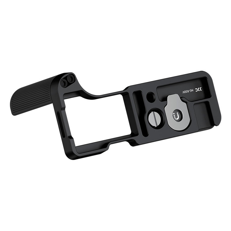 A markolat alján egy 1/4"-20 menetes lyuk található, amely lehetővé teszi a háromlábú állványra való felszerelést a stabil, kézmentes fényképezés és a kamera rázkódásának csökkentése érdekében. Emellett egy Arca-Swiss típusú gyorskioldó lemez is be van építve, amely gyors felszerelést és leszerelést tesz lehetővé az Arca típusú állványfejeken. Ezenkívül az alján egy vakupapucs foglalat található, amelyhez kiegészítők, például LED-es lámpák vagy mikrofonok csatlakoztathatók, ideális videofelvételek készítéséhez és tartalom létrehozásához. Az oldalon található zsinórfurat lehetővé teszi a JJC HS-MLSE sorozatú csuklópánttal (külön kapható) való párosítást. A markolat felszereléséhez és eltávolításához egy lapos fejű csavarhúzó tartozik. A szerszámtartó mágneses kialakítású, így a csavarhúzót biztonságosan a helyén tartja és megakadályozza az elvesztését.