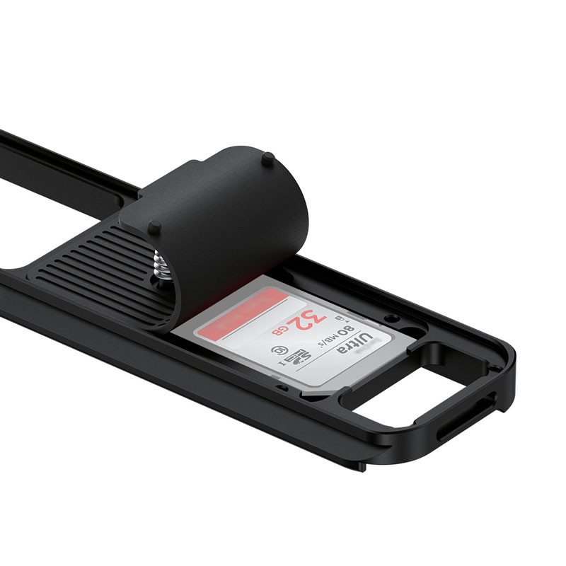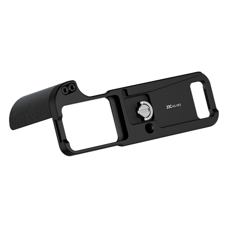 A JJC HG-XE5 kamera markolatot kifejezetten a Fujifilm X-E5 fényképezőgéphez tervezték, javítva az általános kezelhetőséget. A markolat teste tartós alumíniumötvözetből készült, ami biztosítja az erősségét és megbízhatóságát. A markolatot puha, csúszásmentes szilikon borítja, ami kényelmes érzést és biztos fogást biztosít. A kamerával érintkező felületen szilikon párna található, amely megakadályozza a karcolásokat a mindennapi használat során. A szilikon párna alján beépített SD-kártya nyílás található, amelyben egy SD-kártya biztonságosan tárolható. A markolat pontosan illeszkedik a kamerához, nem takarja el a csatlakozókat, és az akkumulátorok vagy memóriakártyák cseréje a markolat eltávolítása nélkül is könnyen elvégezhető. Az alján található 1/4"-20 menetes lyuk lehetővé teszi a tripodra való felszerelést, így szabadon használhatja a kezét, és a kamera rázkódásának csökkentésével javíthatja a felvételek stabilitását. A beépített Arca-Swiss gyorskioldó lemez kompatibilis az Arca típusú állványfejekkel, lehetővé téve a gyors rögzítést és eltávolítást. A hangszóró és a Bluetooth gomb számára nyílások vannak fenntartva, biztosítva a teljes funkcionalitást akadályok nélkül. Ezenkívül a markolat kompatibilis a Peak Design Capture Camera Clip V3-mal. Tartalmaz egy exponáló gombot a könnyebb kezelés érdekében.
