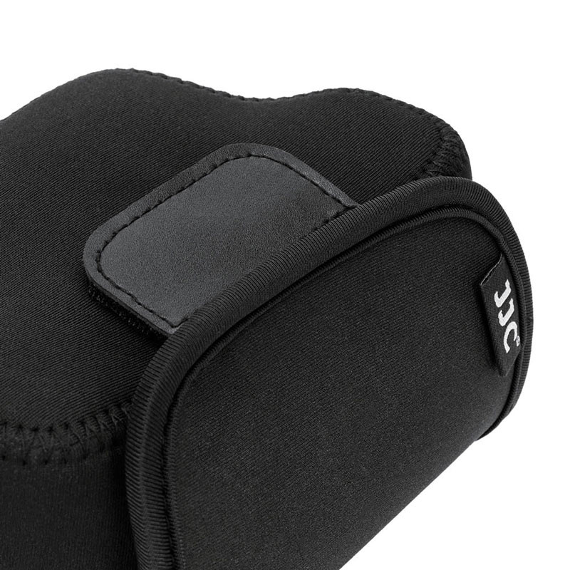 A JJC OC-X100 BLACK kameratáska kifejezetten a Fujifilm X100VI és X100 sorozatú, valamint a Fujifilm X-E5 fényképezőgépekhez lett tervezve, amelyekben a fényképezőgép por, ütések, karcolások és enyhe ütések ellen védve tárolható. A kényelmes használat érdekében a tok egy tapadószalaggal nyitható és zárható. A könnyen hozzáférhető kialakításnak köszönhetően a fényképezőgép könnyen kivehető a tokból. A tok mérete úgy van kialakítva, hogy elférjen benne a JJC LH-JX100 vagy a Fujifilm LH-X100 objektívvédővel felszerelt fényképezőgép. Kiváló minőségű neoprénből készült, amely anyag nagy rugalmasságot és vízálló felületet biztosít – ideális az értékes fényképezőgép-felszerelések védelméhez. Ez a fényképezőgép-táska kompatibilis az eredeti fényképezőgép-hevederrel, és nem zavarja annak használatát. Ezenkívül egy rögzítővel is rendelkezik, amely a hevederhez vagy a fényképezőgép hevederfühéhez rögzíthető, így megakadályozza, hogy a táska a fényképezés során elvesznek.