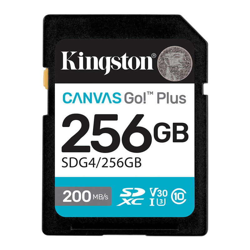 A munkafolyamatok hatékonyságának felgyorsítására tervezett 256 GB-os Canvas Go! Plus UHS-I SDXC memóriakártya a Kingstontól lehetővé teszi a felhasználók számára az UHD 4K és Full HD videók, nyers és JPEG képek, valamint a gyors sorozatfelvételek rögzítését. Tárolókapacitása 256 GB, és az UHS-I busz előnyeit kihasználva 200 MB/s maximális olvasási sebességet támogat. Ez a kártya a V30 Video Speed Class és U3 minősítéssel is rendelkezik, ami legalább 30 MB/s írási sebességet garantál.