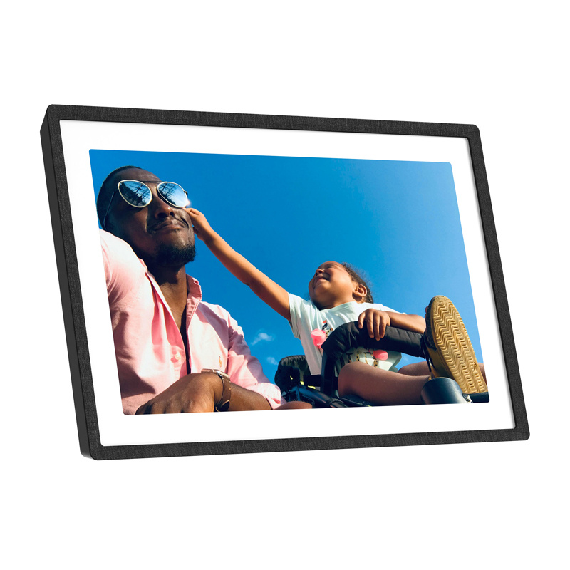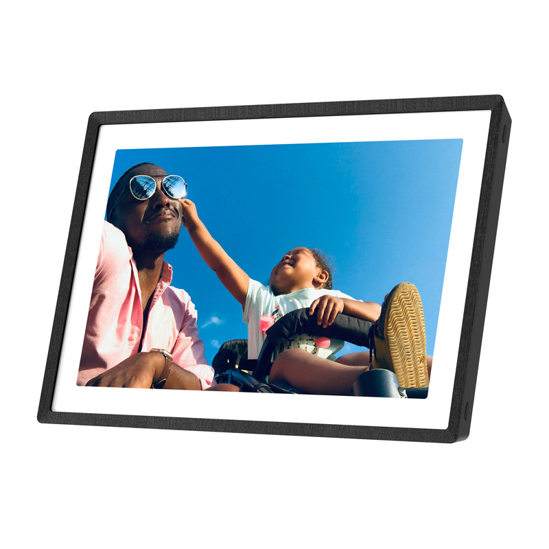 A keret automatikusan elforgatja a fényképeket, a tájolástól függően függőlegesen vagy vízszintesen jeleníti meg őket. Ezenkívül órát, időjárás-előrejelzést és alvó üzemmódot is kínál, amely a saját preferenciáihoz igazítható. A mágneses állvány stabil elhelyezést biztosít az asztallapon, a beépített tartó pedig lehetővé teszi a falra szerelést.