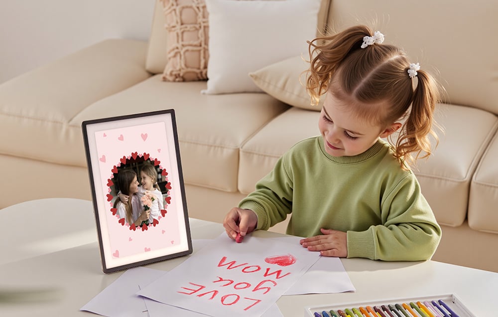 A készülék lehetővé teszi, hogy azonnal válaszoljon a kapott fényképekre és videókra - csak érintse meg a képernyőt, és küldjön hangulatjeleket, például egy szívet vagy egy mosolyt. A funkció a közösségi médiába való bejelentkezés nélkül működik, így könnyen kommunikálhatsz szeretteiddel. Egyetlen kerethez akár 512 felhasználó is hozzáadható, így a világ minden tájáról érkező családtagok és barátok együtt állíthatják össze az emlékek galériáját.