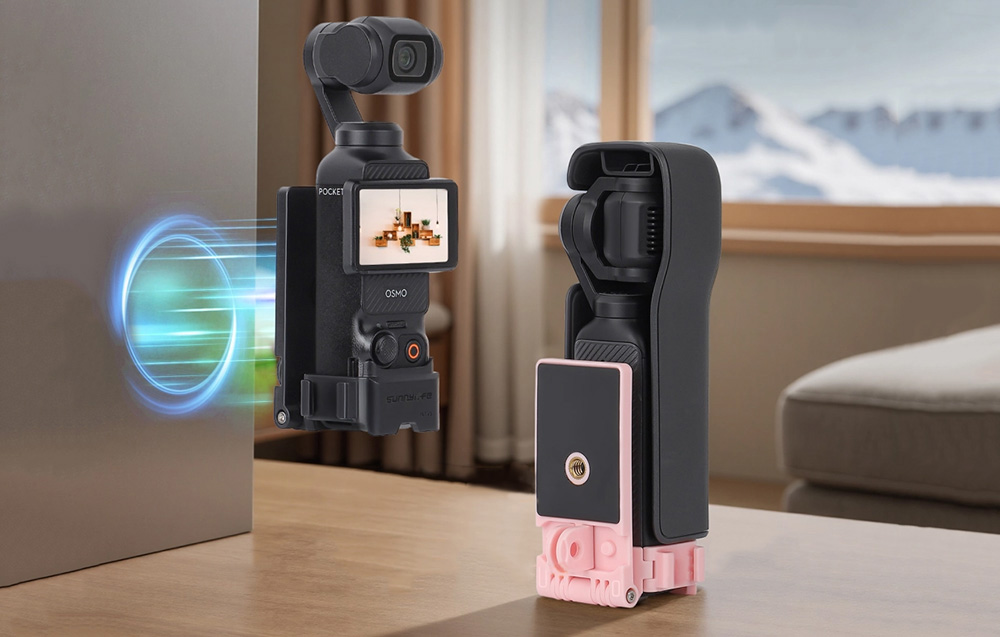 Sokoldalú bővíthetőség: A Sunnylife 761V3 többféle rögzítőfelületet kínál, például 1/4 hüvelykes menetet, összecsukható 2-tűs rögzítést és hidegcipő-adaptert. Az 1/4"-es menettel az Osmo Pocket 3 más fényképezőgépekhez is csatlakoztatható (1/4"-es cold shoe adapter szükséges, nem tartozék) a szélesebb felvételi szögek és érdekesebb felvételek érdekében. Az összecsukható 2 tűs tartó kompatibilis számos Sunnylife tartozékkal. A cold shoe csatlakozó pedig lehetővé teszi olyan tartozékok, mint például mikrofonok vagy háttérvilágítás felszerelését.