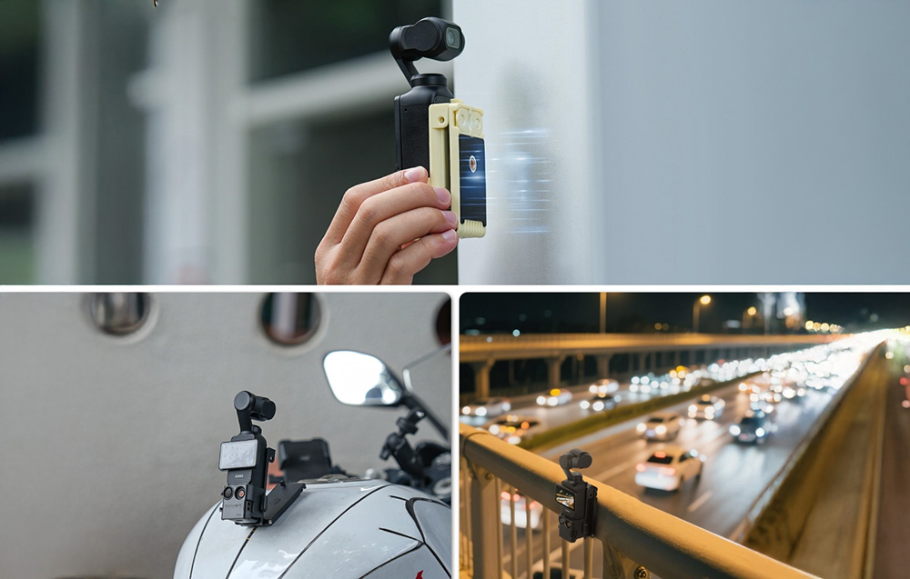A Sunnylife 761V2 tartó többféle alkalmazásra készült. Használható asztali állványként (új felvételi perspektívákat biztosít), tartozékként a mozgó vlogoláshoz (autóból vagy kerékpárról történő felvételkészítéshez), vagy eszközként a stabil time-lapse felvételek készítéséhez. Ezenkívül az erős ragasztószalag használata lehetővé teszi a sima és tiszta felületekre, például fára, üvegre, fémre, csempére, márványra vagy falra történő rögzítést.