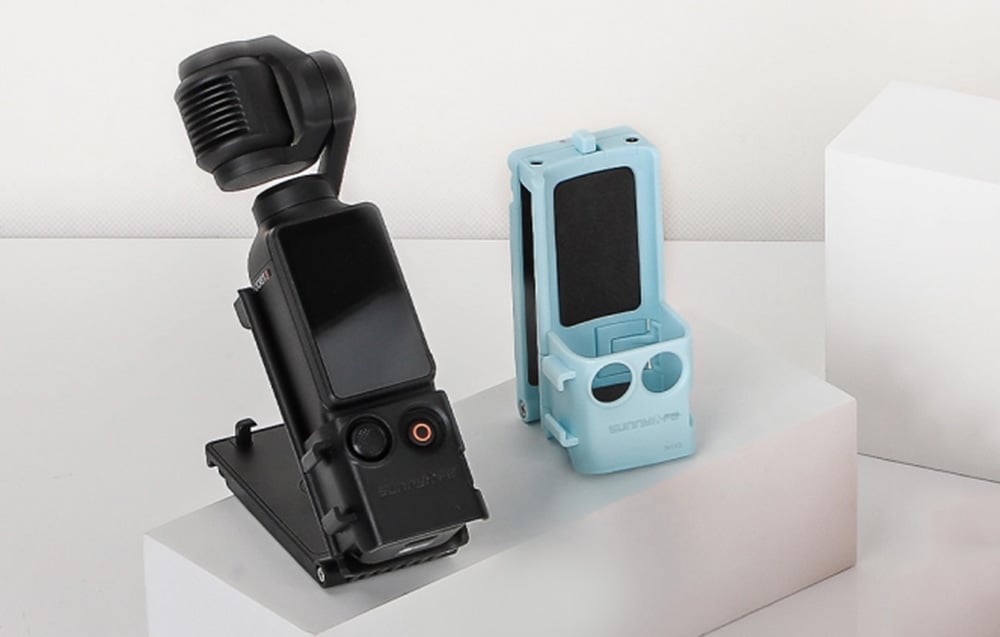 A tartó csúszásmentes szilikonbetéttel rendelkezik, amely megakadályozza a fényképezőgép elcsúszását és megvédi a karcolásoktól. A beépített puha betétek tovább stabilizálják az Osmo Pocket 3 kamerát, megvédve azt az ütésektől és karcolásoktól.