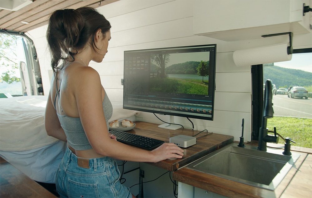 A GEEKOM A8 Mini-PC teljes támogatást nyújt az egyidejűleg 4 monitoron való munkavégzéshez, további adapterek nélkül. A nagy felbontású támogatást USB-C 4.0, USB 3.2 Gen2 és 2x HDMI 2.0 portok biztosítják, amelyek lehetővé teszik a 8K@30Hz és 4K@60Hz megjelenítést - ideális a többképernyős környezetben dolgozó tartalomkészítők, adatelemzők vagy fejlesztők számára.