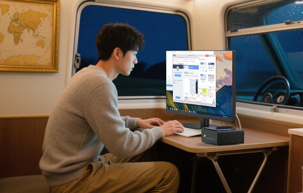 A készülék akár négy egyidejűleg akár 8K felbontású monitort is támogat, kivételes vizuális élményt és nagy munkaterületet kínálva. Olyan portokkal rendelkezik, mint az USB 4.0, az USB-C, a DisplayPort 1.4 és a HDMI 2.1, így számos eszköz csatlakoztatható hozzá - a monitoroktól és a grafikus táblagépektől kezdve a tévékészülékekig és a projektorokig. Ideális olyan kreatívok, elemzők és szakemberek számára, akiknek egy nagy teljesítményű mini PC-re van szükségük a több képernyős munkához és a kiváló minőségű képfeldolgozáshoz.