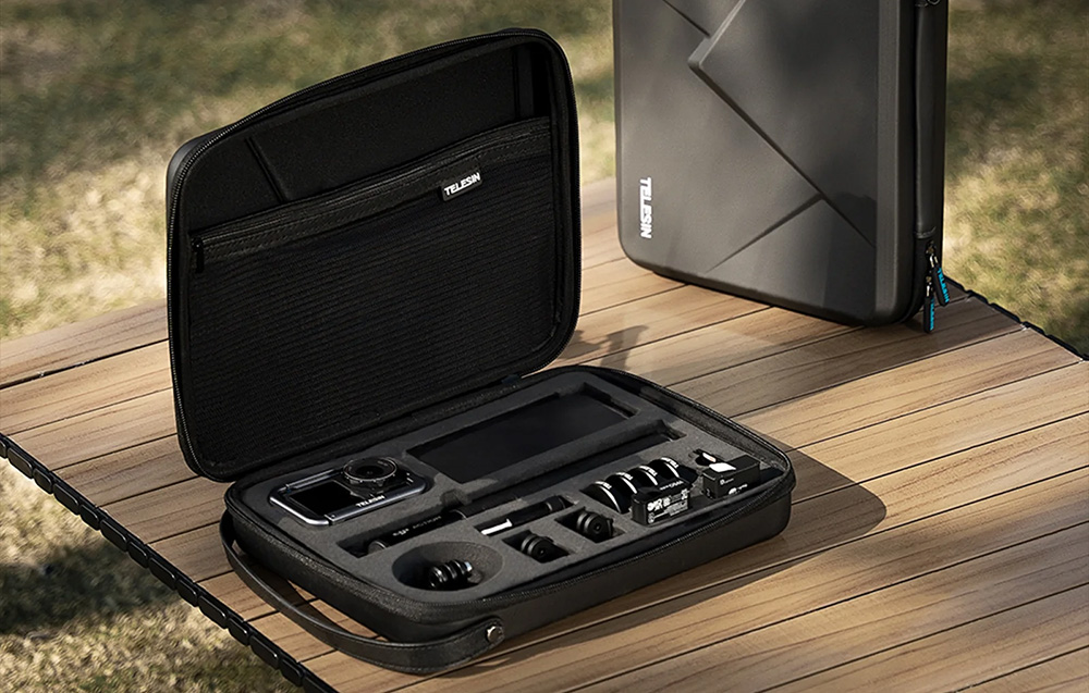 A Telesin táska súlya mindössze 420 gramm, és méretei (262 x 206 x 65,5 mm) miatt ideális azok számára, akik szeretnék, hogy minden felszerelésük mindig kéznél legyen. Rákapcsolható a hátizsákra, vagy egyszerűen betehető egy túratáska zsebébe. Praktikus megoldás vloggerek és utazók számára egyaránt, akiknek fontos a rend, a gyorsaság és a felszerelés biztonsága.