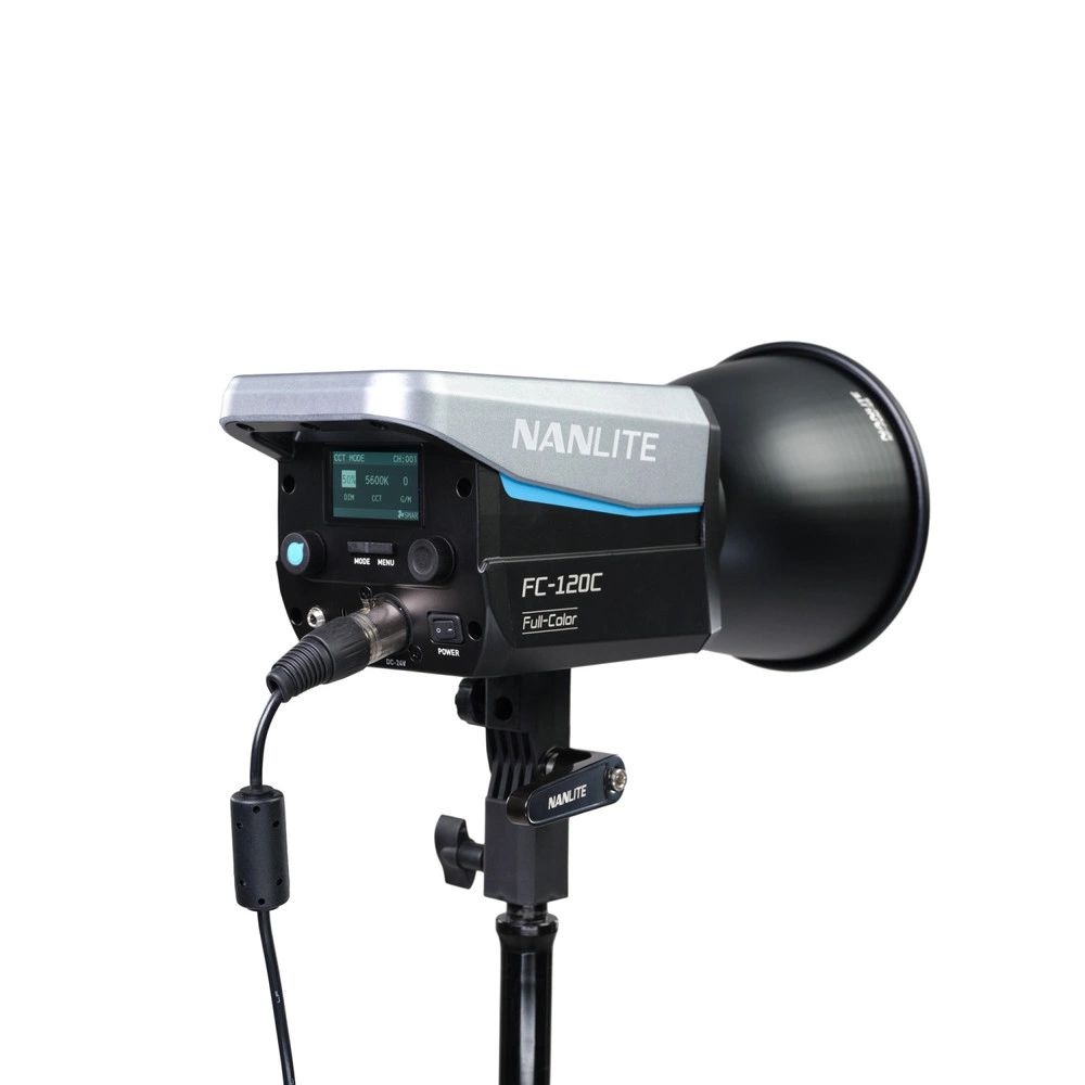 A Nanlite FC-120C egy meglepően kompakt és könnyű LED spotlámpa, amely teljes RGB szín-, és széles, 2700K–7500K CCT-tartományt biztosít, továbbá bár kicsi és könnyű, a fényessége 12850 lux, 1 m-en, 5600K-n a mellékelt reflektorral. Az FC-120C működhet akkumulátorról, power bankról, vagy hálózati áramról, rendkívül pontos fényt biztosít, és sokféle vezérlési módot nyújt: beépített, Bluetooth-t, 2.4G-t és DMX/RDM-et. Az alkotók mindig azt szeretnék, hogy a lámpáik miközben kicsik, a lehető legerősebbek, a képkockán belüli objektumok mögé könnyen elrejthetők, valamint megfizethetőek legyenek. Az FC-120C tökéletesen betölti ezt a szerepet. Teljesen kezdők is egyszerűen használhatják, és fejlett funkciókat is nyújt. A csomagban habszivacsos védőtok található, amelybe belefér az FC-120C, a hálózati adapter, a 45°-os reflektor és a Bowens-Mount adapter.