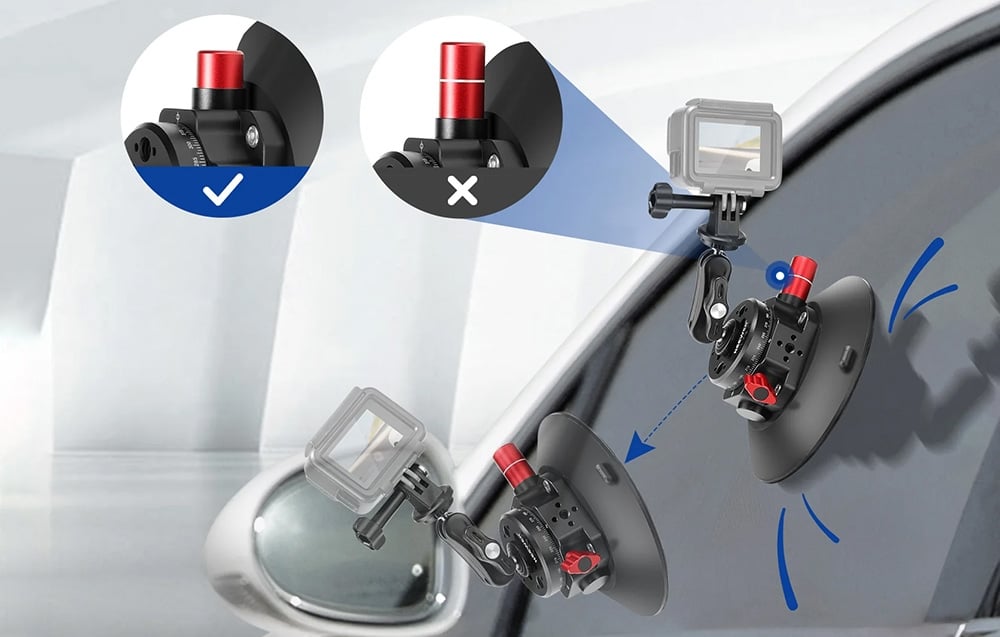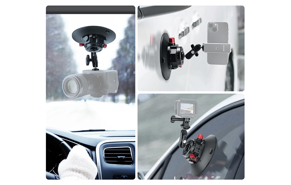 A Neewer CA013 1/4 hüvelykes tapadókorongos tartó sportkamerákhoz, tükör nélküli fényképezőgépekhez és okostelefonokhoz lett tervezve. Vákuumszivattyúval és csuklós karral ellátva, ideális GoPro Hero, DJI Osmo Action, Insta360 modellekhez, valamint Sony, Canon és Nikon eszközökkel. A vákuumrendszer gyors és biztonságos rögzítést tesz lehetővé sima felületekre.