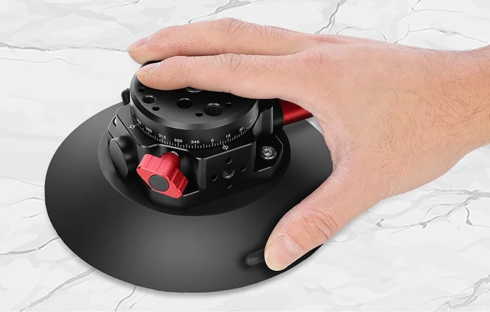 Nagy tartóerővel rendelkezik, mozgás közben 5 kg, álló helyzetben vízszintesen 40 kg, függőlegesen 50 kg teherbírásig. Kiváló tapadást biztosít üveg, fém, kerámia és sima falapokon. Rögzítési pontjai univerzálisak az 1/4" és 3/8" menetekkel, és kompatibilitást biztosítanak különböző felszerelésekkel. A csuklós kar kettős gömbfejének köszönhetően 360°-os forgás és pontos szögbeállítás lehetséges.