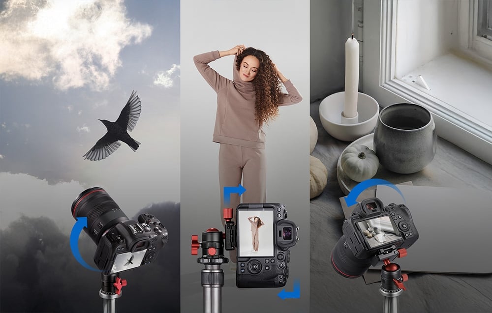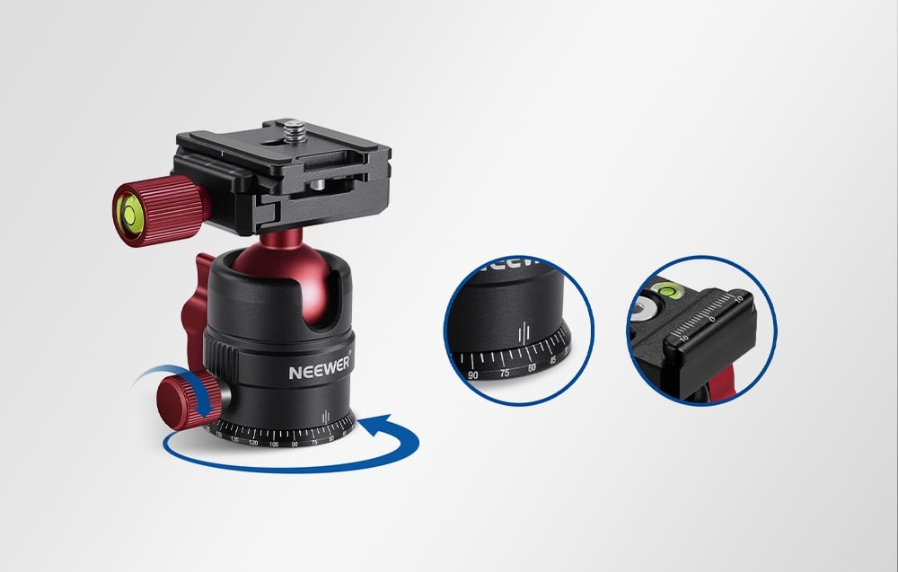 A Neewer gömbfej lehetővé teszi a felvétel tájolásának gyors megváltoztatását - gyorsan válthat a függőleges, vízszintes, valamint a magas és alacsony szögű pozíciók között. Egy ilyen megoldás sokoldalúságot biztosít a stúdióban, szabadban vagy termékfelvételek készítésekor.
