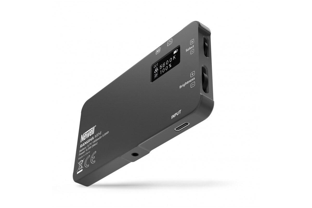 A Newell RGB-W Rangha Mini egy kompakt LED panel, amelynek mérete 11 cm x 6 cm. Kis mérete ellenére nagy fényerőt kínál, amely jól fog működni a filmes és fotózási világban. A széles színhőmérséklet-szabályozási tartomány (2500 – 9900 K) lehetővé teszi mind a meleg, mind a hideg fénytónusok elérését.