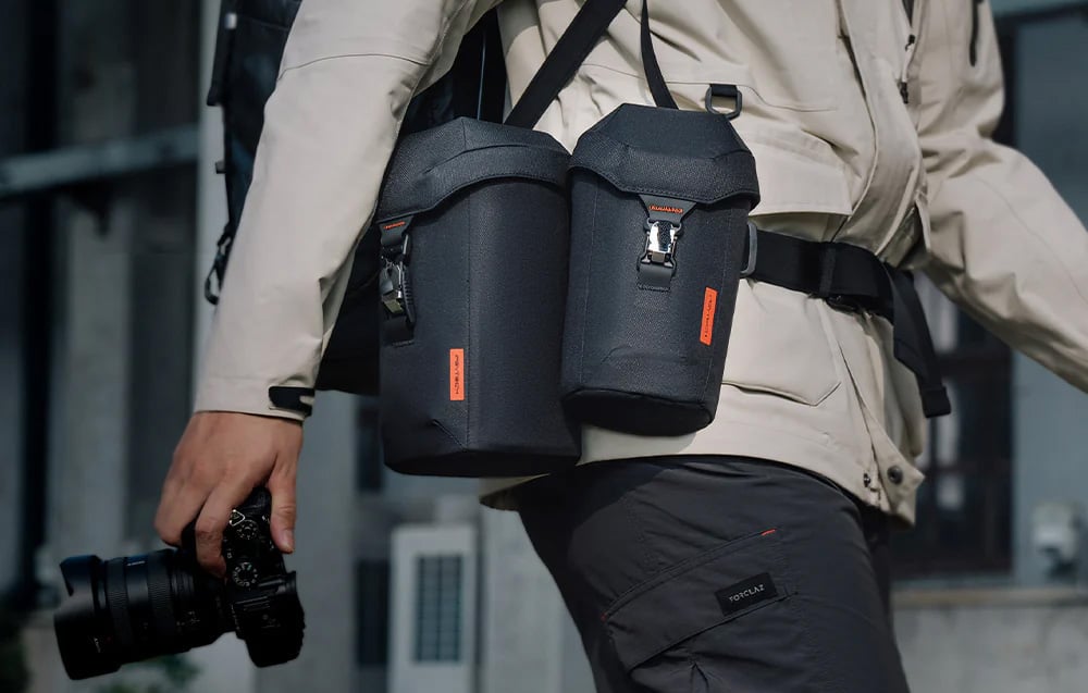 Az eset 70% poliészter és 30% poliuretán kombinációjából készült, ami garantálja a kopásnak és nedvességnek való ellenállást. A belső rész puha poliészterrel van bélelve, amely megvédi az objektíveket a karcolásoktól és ütésektől. A 260 gramm súlyú tok könnyű, mégis masszív, így tökéletesen védi a felszerelést anélkül, hogy felesleges súlyt adna hozzá.