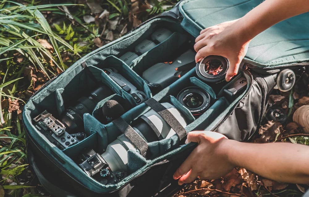 Kompatibilitás: Akár két DSLR vagy tükör nélküli fényképezőgép, kilenc objektív és egy 200-600 mm-es objektív vagy egy DJI drón befogadására is alkalmas.