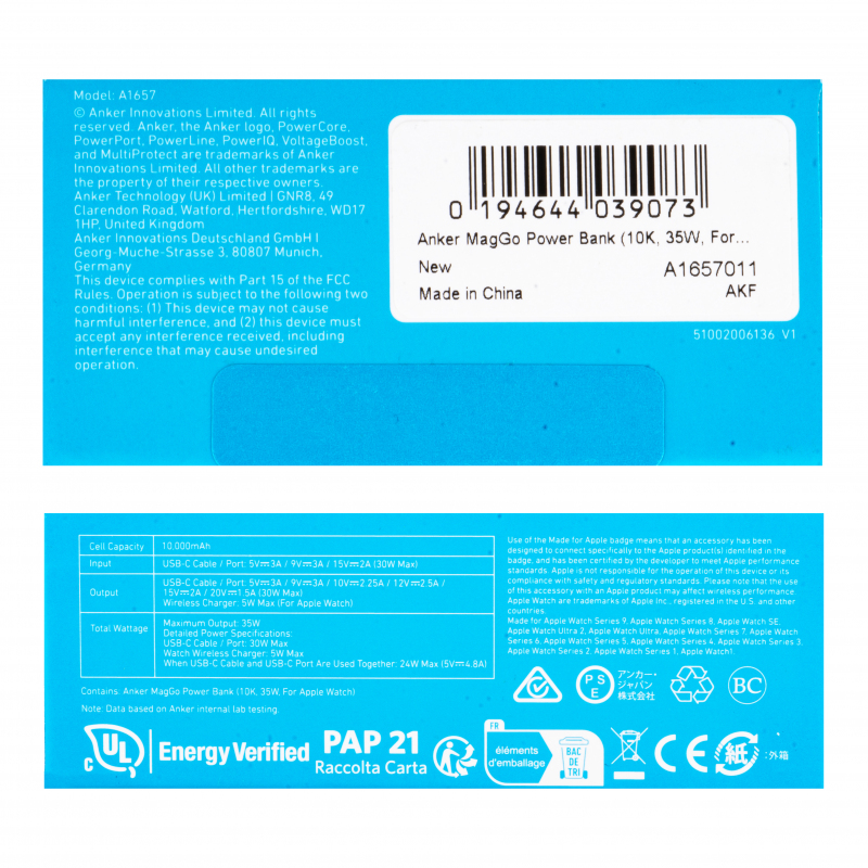 - „Made for Watch” tanúsítás: Az Anker MagGo hivatalos Apple Watch tanúsítvánnyal rendelkezik, garantálva az optimális, biztonságos és hatékony 5W-os vezeték nélküli töltést minden kompatibilis Apple Watch modell számára (Series 2-10, Ultra / Ultra 2, SE). Fontos megjegyzés: az Apple Watch SE és a Series 7 előtti modellek nem támogatják a gyorstöltést.