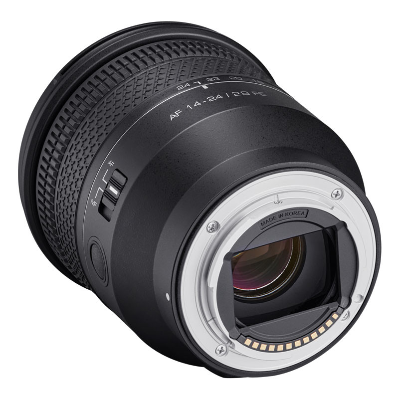 A Samyang AF 14-24mm F2.8 FE a német Schneider-Kreuznach optikai specialista és a Samyang közös fejlesztésének eredménye. Kompakt mérete ellenére, amely mindössze 88,8 mm hosszú, kifinomult optikai kialakítással rendelkezik, 15 elemmel 11 csoportban. Ebbe 3 aszférikus, 5 nagy törésű és 3 extra alacsony szórású elem tartozik, amelyek együttesen biztosítják az éles képélességet, minimális kromatikus aberrációval és torzítással. A sagittális kóma és más optikai hibák hatékony korrekciója különösen alkalmassá teszi ezt az objektívet éjszakai tájképek és asztrofotózás számára. Állandó f/2.8-as rekesznyílása kiváló gyenge fényviszonyokat biztosít a teljes zoomtartományban.