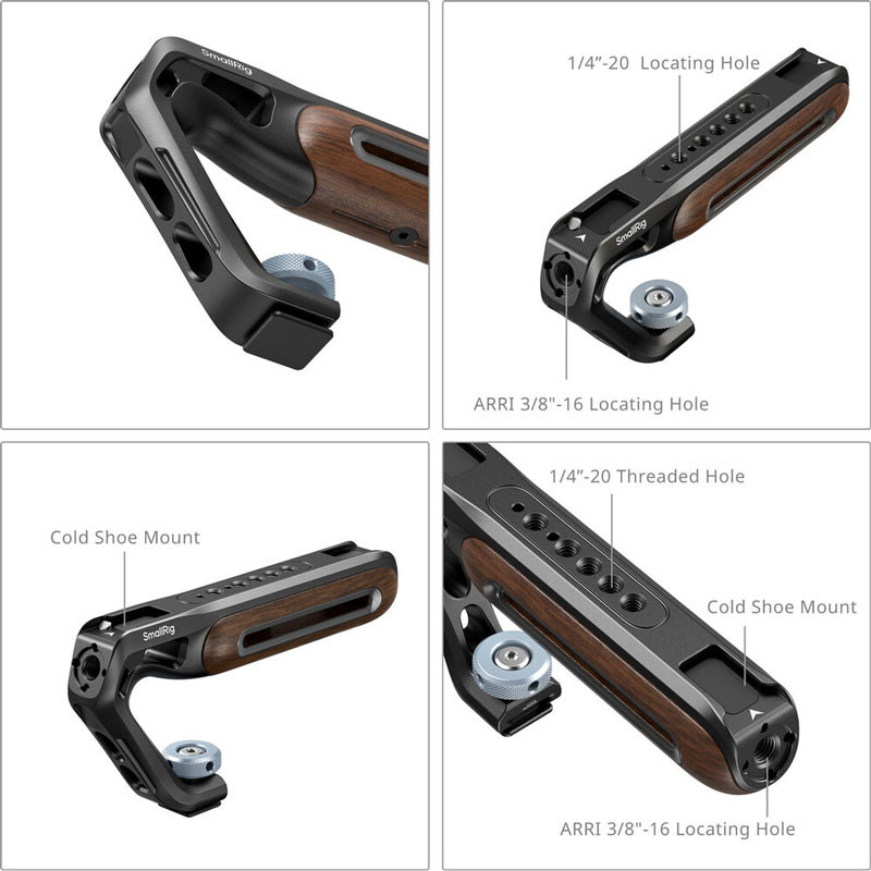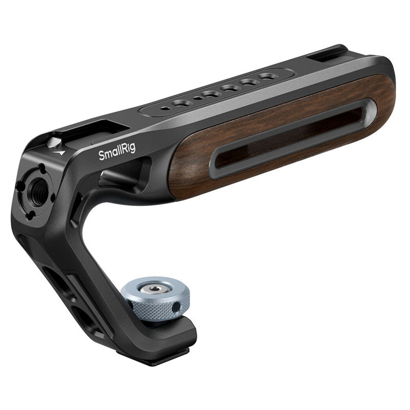 Kézből és alacsony szögből készített felvételeket készíthet könnyedén ezzel a SmallRig fából készült, vakupapuccsal ellátott felső fogantyúval. A fokozott kényelemre, rugalmasságra és professzionális szintű felszerelésre tervezett, sokoldalú alumíniumötvözetből és szantálfából készült fogantyú vakupapuccsal büszkélkedhet, amely biztonságosan ráfeszíthető a fényképezőgép vakupapucsára. A dinamikus és run-and-gun beállításokhoz ideális, masszív fogantyú kényelmes, ergonomikus fogást kínál, amely akár 10 kg hasznos terhet is képes megtartani, könnyedén alkalmazkodva a forgatási igényekhez.
