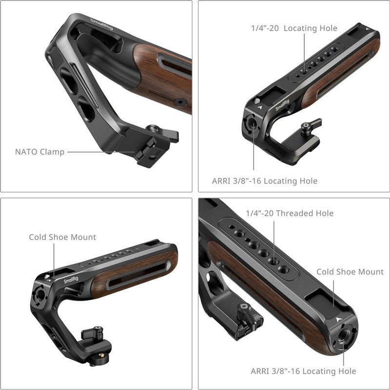 Kézből és alacsony szögből készített felvételeket készíthet könnyedén ezzel a SmallRig fából készült, NATO bilinccsel ellátott felső fogantyúval. A fokozott kényelemre, rugalmasságra és professzionális szintű felszerelésre tervezett, sokoldalú alumíniumötvözetből és szantálfából készült fogantyú NATO bilinccsel és NATO sínnel rendelkezik, amely stabil kapcsolatot biztosít a NATO-kompatibilis ketrecek széles választékával. A dinamikus és run-and-gun beállításokhoz ideális, a masszív fogantyú kényelmes, ergonomikus fogást kínál, amely akár 15 kg hasznos terhet is képes megtartani, könnyedén alkalmazkodva a forgatási igényekhez.