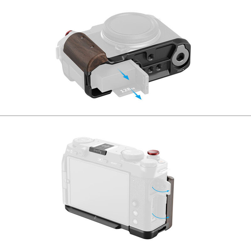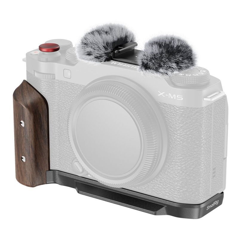 A Fujifilm X-M5 fényképezőgéphez készült SmallRig L-alakú tartólemez fa fogantyúval a kifinomult ergonómiát és a klasszikus stílust ötvözi. A természetes szemcsézettségű fa markolat kényelmes, biztonságos fogást biztosít, miközben vintage ihletésű hangsúlyt ad a beállításoknak. Az 1/4"-20-as csavarral történő rögzítéshez tervezett lemez szilikon párnázást tartalmaz, hogy megvédje a fényképezőgépet a karcolásoktól. A beépített Arca-típusú gyorskioldó talp gyors állványrögzítést tesz lehetővé, míg a négy további 1/4"-20-as menettel további tartozékok vagy Manfrotto-stílusú lemezek rögzíthetők. A mindössze 11,4 x 4,8 x 5,3 cm-es méretekkel és 53,8 grammos súllyal ez a markolat elég kompakt az utazáshoz, mégis stabilan fekszik a kézben. Beépített laposkulccsal, csuklópánt nyílással és számos átgondolt extrával is rendelkezik - többek között puha zárkioldó gombbal, a Fujifilm hanghullámmal és az alapító évszámmal gravírozott vakupapucs fedéllel, valamint levehető szélvédővel, amely vakupapucs rögzítéssel akár 15 dB-rel csökkenti a szélzajt. Akár kézből, akár állványon fényképez, ez a markolat kompromisszumok nélkül fokozza az irányítást, a stílust és a használhatóságot.