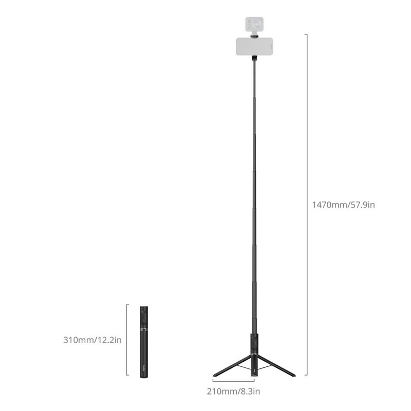 Az ST30 Lite One-Touch Deploy Selfie Stick Tripod a SmallRig-től egy hordozható és sokoldalú tartórendszer az okostelefonok számára, amikor úton van. Az okostelefon-fogója biztonságosan tartja a 3,8 és 9,9 cm közötti telefonokat, és állítható dőlésszöggel és forgatással rendelkezik a pontos vízszintes vagy függőleges tájoláshoz. Az egyérintéses telepítési kialakítás egy szempillantás alatt felállítható, hogy azonnali stabilitást biztosítson, amint szüksége van rá. Az önnyíló állványalap szilikon gumilábakkal rendelkezik a tapadás érdekében bármilyen felületen. Az ST30 szelfibotként is használható vlogoláshoz, élő közvetítéshez és sok máshoz.