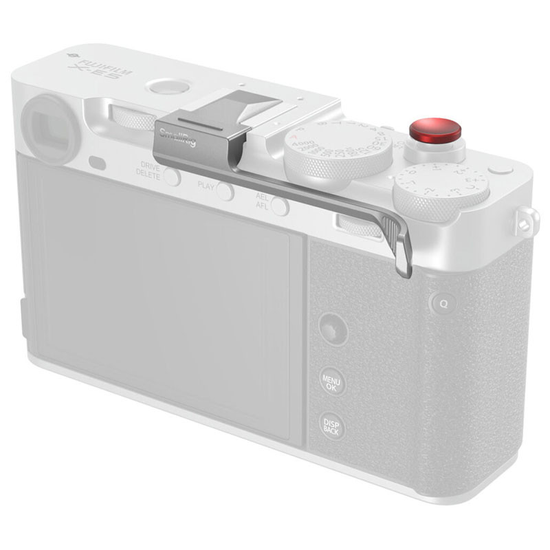 A tartós alumíniumötvözetből készült, alacsony profilú hüvelykujjas markolat színben illeszkedik az ezüst X-E5 fényképezőgéphez, javítva az ergonómiát anélkül, hogy a fényképezőgép minimalista vázát veszélyeztetné. A homorú zárgomb a képek rögzítése közbeni jobb tapintású visszajelzés érdekében került beépítésre.