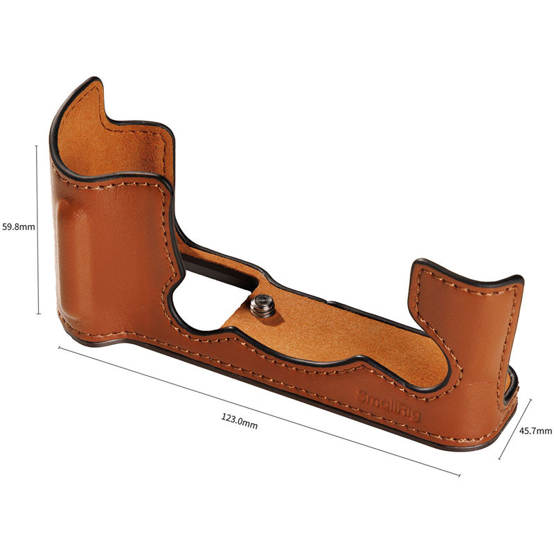 A SmallRig bőr fél tok készletével FUJIFILM X-T30, X-T30 II vagy X-T30 III fényképezőgépét újszerű állapotban tarthatja. Tartós PU bőrből készült, véd a karcolásoktól és ütésektől, miközben biztos fogást biztosít. A fél tok egy integrált 1/4"-20-as alsó menettel rögzíthető a fényképezőgéphez, és vállpánttal, exponáló gomb fedéllel, két O-gyűrűvel, két bőr O-gyűrű párnával és egy lapos fejű csavarkulccsal együtt kapható.