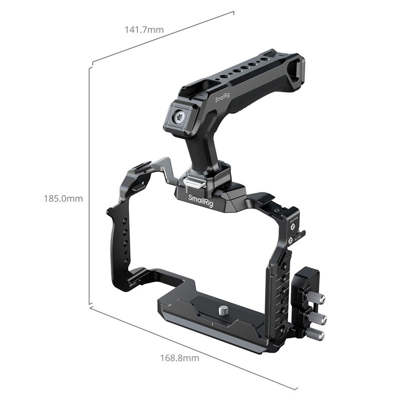 Bővítse Panasonic Lumix tükör nélküli fényképezőgépének képességeit ezzel a SmallRig kamera ketrec készlettel. A fényképezőgép vázára biztonságosan rögzíthető, védőszerkezetet biztosít mindenféle kiegészítő felszereléséhez 1/4"-20 és 3/8”-16 menetekkel, két NATO sínnel a tetején és az oldalán, valamint két vakupapucs foglalattal. Hárompontos reteszelő kialakítása megakadályozza, hogy a fényképezőgép elmozduljon vagy elforduljon a ketrecben. A mellékelt HawkLock H21 gyorskioldó felső fogantyú két további vakupapucs foglalattal, két H21 NATO sínnel és több 1/4"-20-as menettel rendelkezik, míg a HDMI és USB-C bilincs a fontos kábeleket a fényképezőgép oldalához rögzíti, megakadályozva a véletlen leválást felvétel közben.