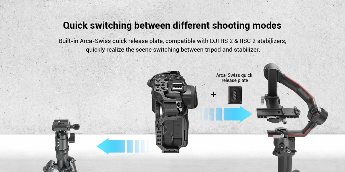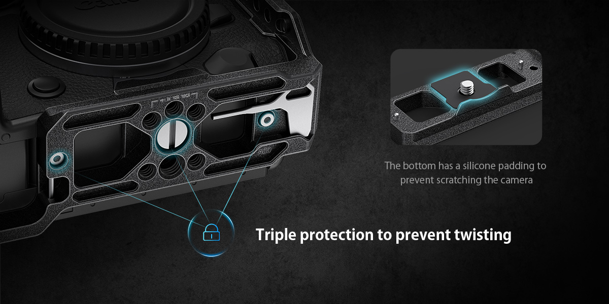 A SmallRig „Black Mamba” készlet Canon EOS R5 C & R5 & R6 (3234B) kamerákhoz ARRI felső fogantyúval, egy minden-az-egyben teljes cage és egy dedikált kábelbilincsel rendelkezik, amely védelmet és több kiegészítő rögzítést biztosít a fényképezőgépekhez. A „Black Mamba” stílusú cage teljes hozzáférést biztosít a kamera vezérlőelemeihez, és több tartozéktartóval is rendelkezik, mint például 1/4"-20 menetes furatok, ARRI 3/8"-16 rögzítő lyukak, vakupapucs foglalatok a felső fogantyúhoz, oldalfogantyúhoz, magic armhoz, monitortartóhoz, LED lámpához stb., valamint Arca-Swiss lemez DJI RS 2/RSC 2/RS 3/RS 3 Pro-hoz és Arca-Swiss állvány a kézi, stabilizátor és állvány közötti gyors váltáshoz. A csavaros HDMI és USB-C kábelbilincs megakadályozza a véletlen leválasztást, és stabil jelátvitelt biztosít; a könnyű ARRI felső fogantyú, amely mindössze 122 g-ot nyom, ergonomikus kialakítású a kényelmes és szilárd fogás érdekében. A készlet súlya mindössze 313 g hogy a felhasználó csökkentse a karterhelést a filmezés során.