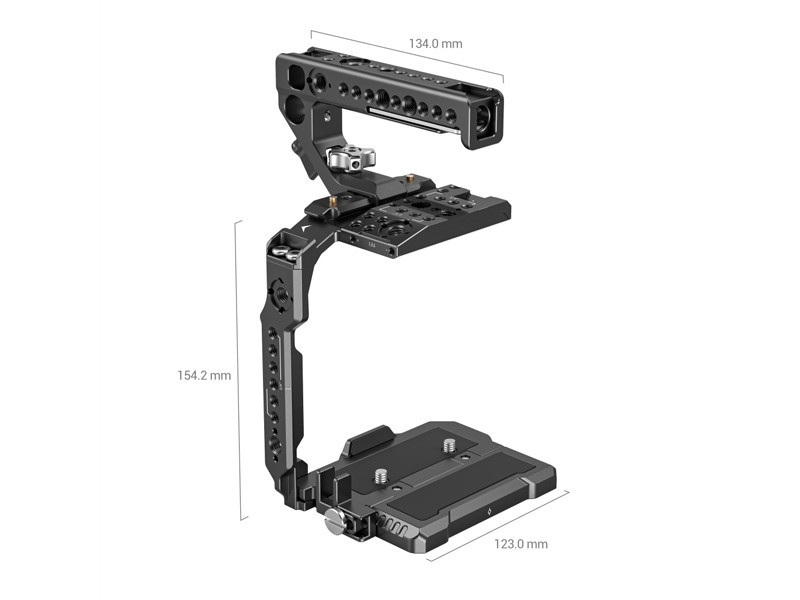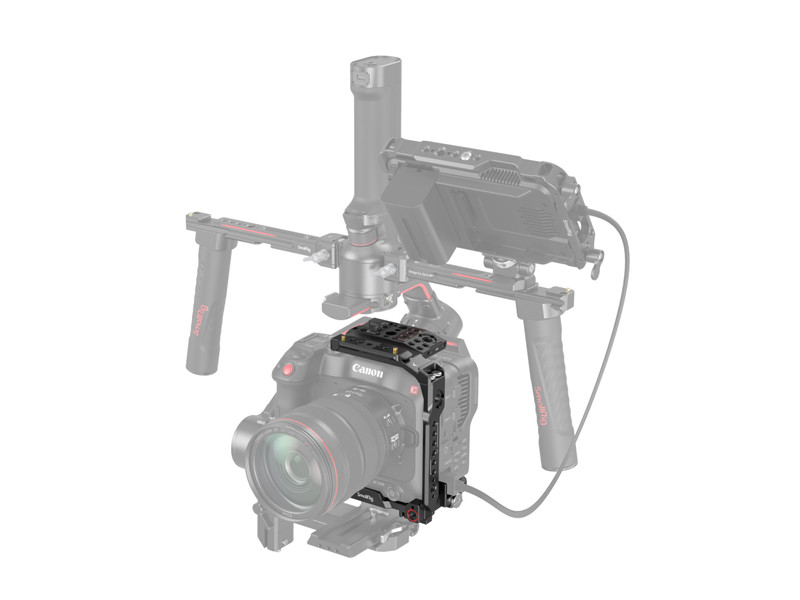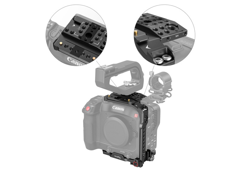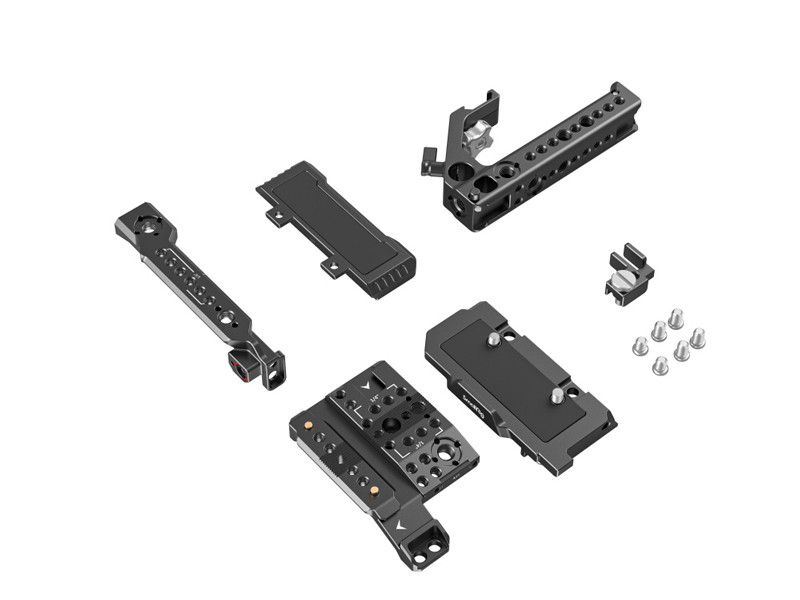 A SmallRig Handheld Kit for Canon EOS C70 3899 a fényképezőgép védelmére és a tartozékok rögzítési pontjainak biztosítására szolgál, így kényelmes kézi felvételkészítést tesz lehetővé. Tartalmaz: egy fedőlapot, egy oldallapot, egy alaplemezt, egy levehető, meghosszabbított alaplemezt, egy NATO felső fogantyút, egy kábelbilincset stb., amelyek közül a kényelmes NATO felső fogantyú megkönnyíti a videókamera mozgatását és stabilizálja a felvételkészítést; a fedőlap , az alaplemez és az oldallap egy fél cage-be szerelhető össze, amely támogatja az eredeti fogantyúegységet és a mikrofontartó egységet. A fél cage alapja egy alaplemezből és egy levehető, meghosszabbított alaplemezből áll. A meghosszabbított alaplemez egyszerű eltávolításával közvetlenül az RS 2 / RSC 2 / RS 3 / RS 3 stabilizátorokra és Acra-Swiss állványra szerelhető, lehetővé téve a gyors váltást a kézből történő, a stabilizátoros és az állványos felvételek között. A készlethez tartozik egy HDMI kábelrögzítő is, amely megakadályozza a jel véletlenszerű szétkapcsolódását és biztosítja a stabil adatátvitelt, valamint teljes hozzáférést biztosít az eredeti videókamera markolatához és gombjaihoz. Az 1/4"-20-as menetes furatok, 3/8"-16-os menetes furatok, cold shoe rögzítők, ARRI 3/8"-16-os helymeghatározó furatok, NATO-sínek stb. támogatják az oldalsó fogantyút 3260/2093/2427, a felső fogantyút 2165/1638, a Magic Arm 2115/2071, a monitortartó 3601/2903/2905, az alaplemez kettős 15 mm-es rúdszorítóval 1674, az egyszerű rúdszorító 3276 stb. Ezenkívül egy imbuszkulcsot is tartalmaz a könnyű szétszereléshez és összeszereléshez.