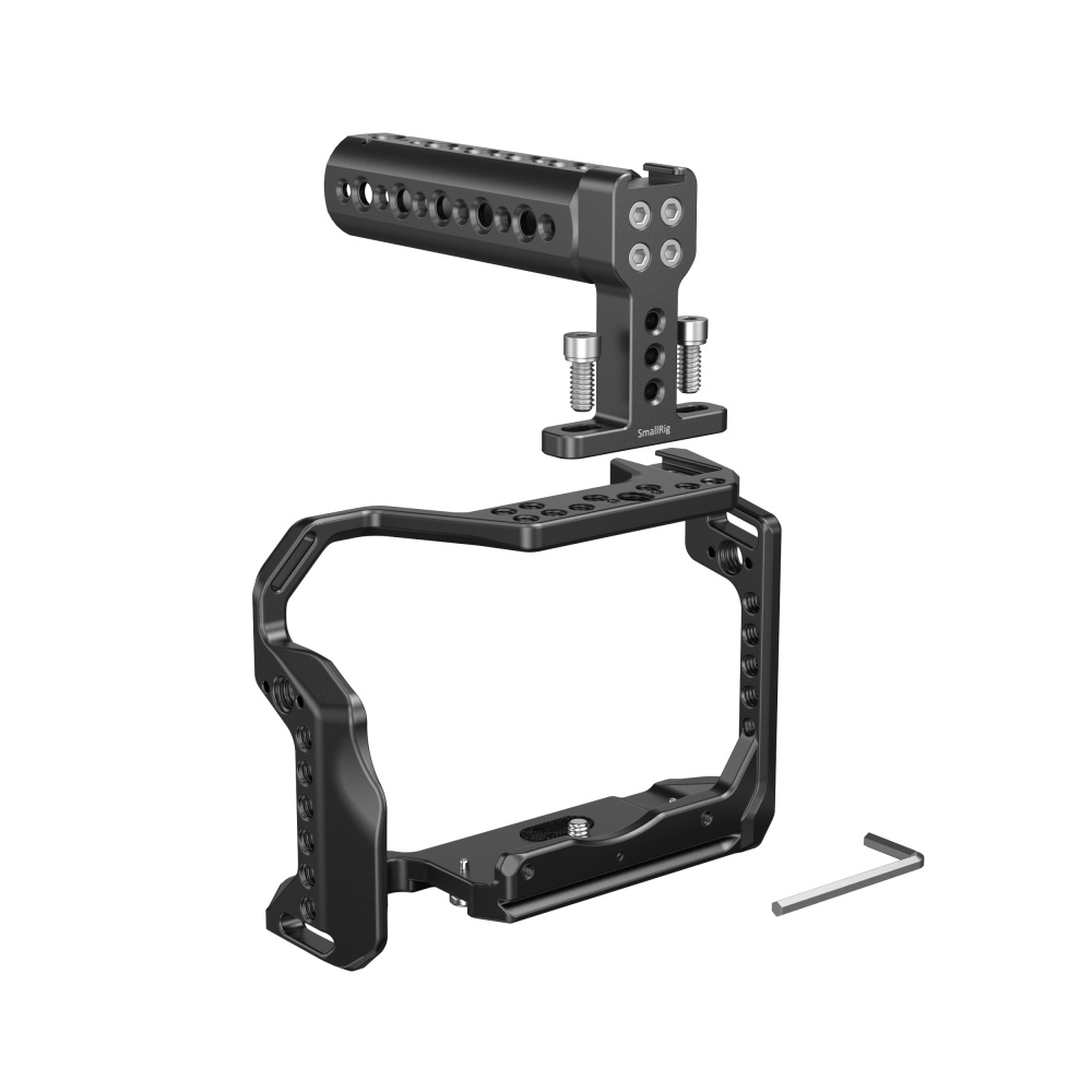 A Canon EOS R 3722 SmallRig kézi készletet úgy tervezték, hogy megkönnyítse az alacsony látószögű felvételeket, megvédje a fényképezőgépet, és kiegészítő rögzítőelemeket biztosítson. A készlet tartalmaz egy teljes caget és egy felső fogantyút. Az alakhoz illeszkedő teljes cage a rögzítési pontok széles skáláját kínálja, mint például 1/4"-20 menetes furatok, ARRI 3/8" -16 rögzítő furatok, vakupapucs foglalatok, NATO sín magic armhoz, oldalfogantyúhoz, LED lámpához és mikrofonhoz stb. A felső fogantyú két 1/4"-20-as csavarral csatlakozik a cagehez, és kényelmes és stabil, alacsony szögű felvételi élményt biztosít, valamint olyan kiegészítő rögzítéseket, mint a 1/4"-20 menetes furat, ARRI 3/8"-16 helymeghatározó lyukak, vakupapucs foglalatok, amelyek támogatják a monitor rögzítését, magic armot és egyéb tartozékokat.