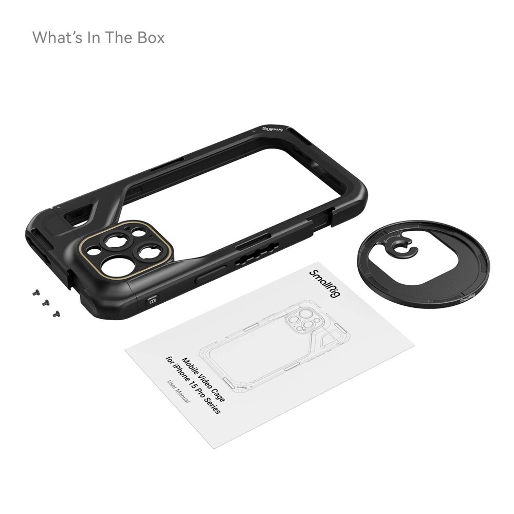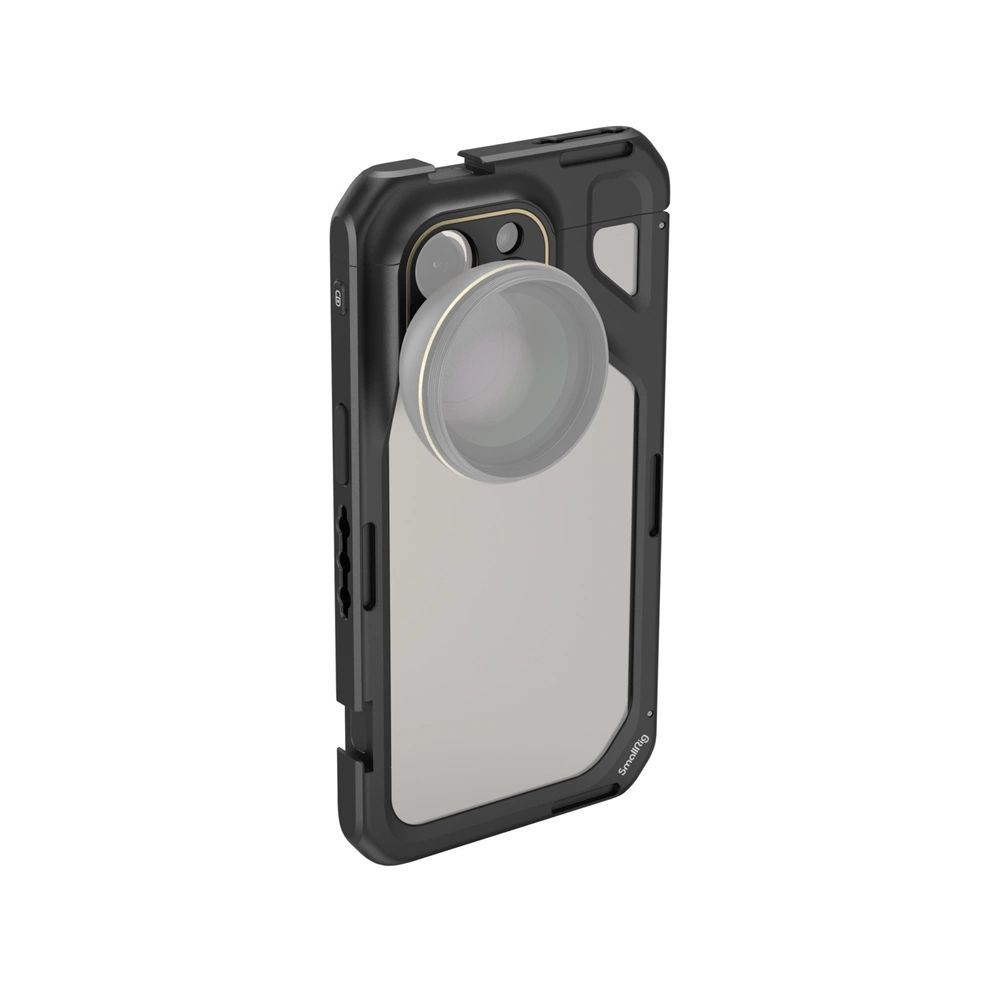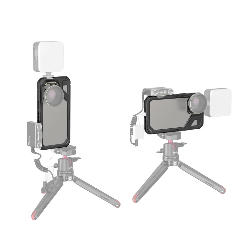 Kifejezetten az iPhone 15 Pro Max-hoz tervezett többfunkciós mobiltelefon-cage kiváló minőségű videofelvételek, élő közvetítések és vlog-felvételek készítéséhez. A kompakt és testhezálló cage mindössze 116 grammot nyom. 1/4"-20-as menetes furatokkal és vakupapucsokkal rendelkezik fogantyú, állvány, mikrofon, LED videolámpa stb. rögzítéséhez, amit a vadonatúj gyorskioldó ökoszisztéma egyszerűbbé és gyorsabbá tesz. Mindkét oldalon vannak 2 mm-nél kisebb lyukak átmérőjű pántokhoz. Lehetővé teszi M-tartós objektív vagy hátlap cseréje esetén 17 mm-es / 37 mm-es menetes objektív, Moment T-sorozatú objektív felszerelését. Finoman van kivájva, hogy minden gombhoz, porthoz, radarhoz, ultraszéles látószögű objektívhez, és MagSafe vezeték nélküli töltőhöz teljes hozzáférést biztosítson. A könnyen használható gyorszáró- és kioldó kialakítás biztonságosabb és stabilabb, így megakadályozza a véletlen érintés miatti feloldást. A fém teljes cage beépített párnákkal is rendelkezik az esetleges ütések és karcolások elkerülése érdekében. A cage felhelyezése nem zavarja a vízszintes vagy függőleges fényképek készítését.