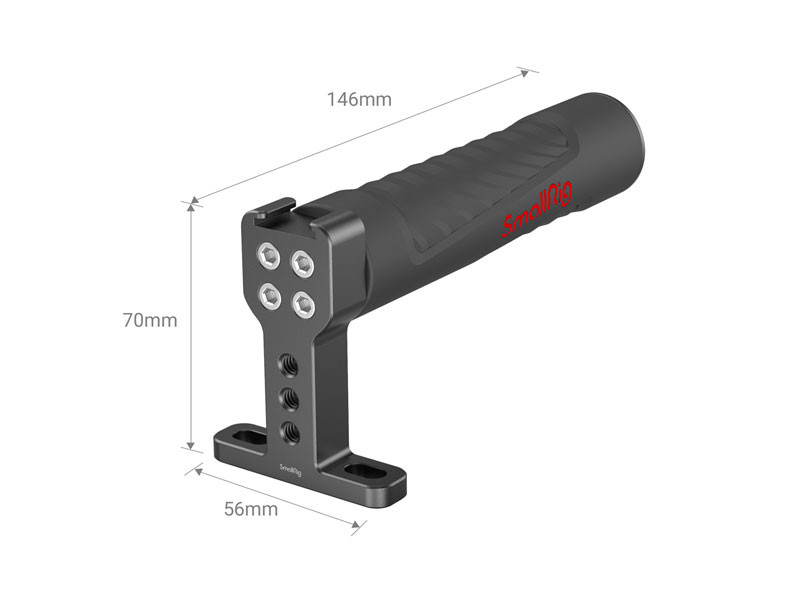 A SmallRig Silicone Top Handle (1/4"-20 csavarok) 1446C úgy lett kialakítva, hogy megkönnyítse az alacsony szögben történő fényképezést és csökkentse a karra nehezedő terheket. Jól formázott és csúszásgátló, fagyálló szilikonból készült, hogy kényelmes legyen. A tetején vakupapucs rögzítéssel rendelkezik mikrofon, LED-lámpa, Monitor MOunt 2905 és három 1/4"-20-as menettel az elülső végén a Magic Arm 2070 monitor rögzítéséhez. Ez a fogantyú az általános meneteken keresztül szerelhető fel.